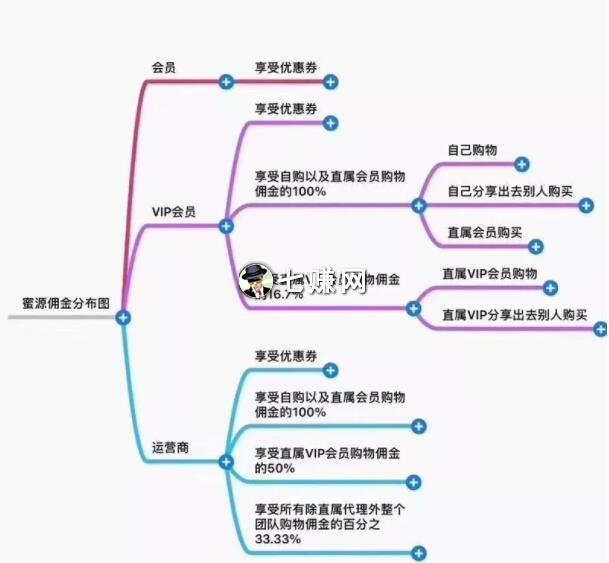 蜜源的等级分为,会员、vip、运营商和分公司,每升一个等级都需要上级去协助升级。